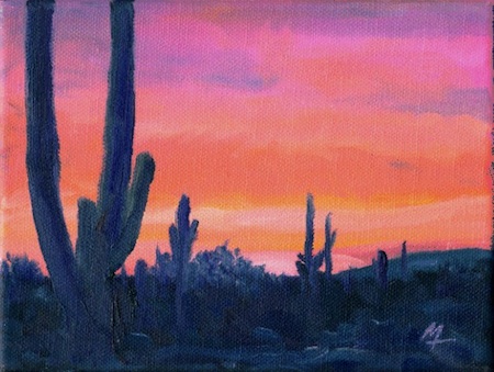Sunset over Ironwood National Monument (oil, 7x5in, 2010)